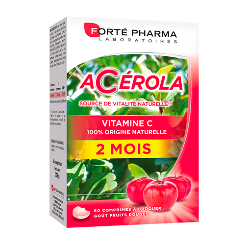 Croquez un comprimé d’Acérola tous les jours vous permet de couvrir ainsi vos besoins quotidiens et vous aide :